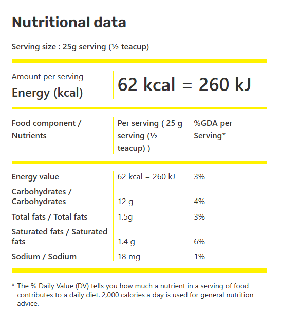 *Ingredient, nutritional and allergen statements may change. Always refer to actual packaging for the most complete and accurate information.