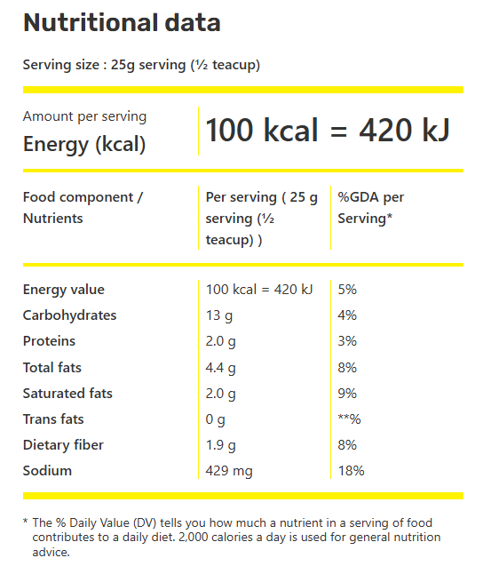 *Ingredient, nutritional and allergen statements may change. Always refer to actual packaging for the most complete and accurate information.