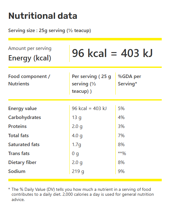 *Ingredient, nutritional and allergen statements may change. Always refer to actual packaging for the most complete and accurate information.
