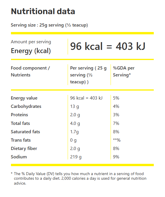 *Ingredient, nutritional and allergen statements may change. Always refer to actual packaging for the most complete and accurate information.