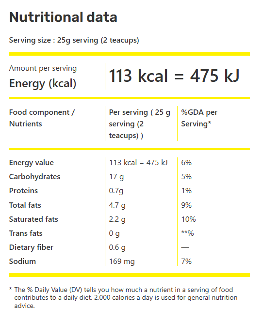 *Ingredient, nutritional and allergen statements may change. Always refer to actual packaging for the most complete and accurate information.