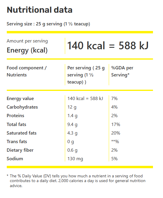 *Ingredient, nutritional and allergen statements may change. Always refer to actual packaging for the most complete and accurate information.