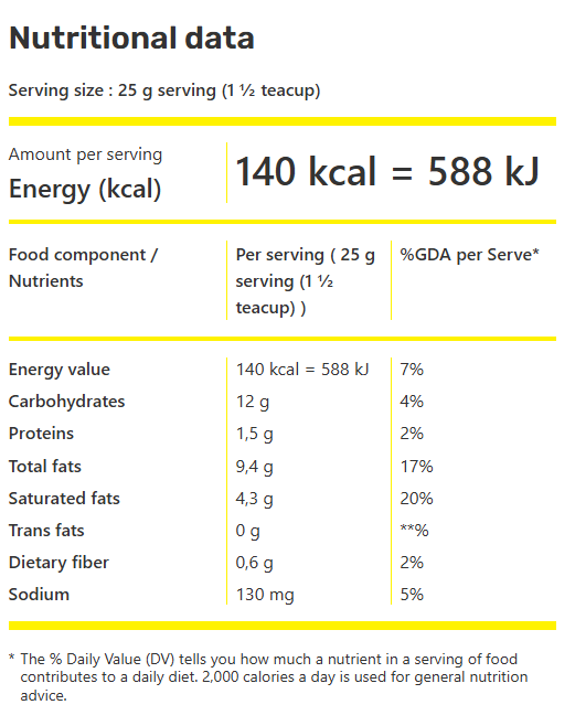 *Ingredient, nutritional and allergen statements may change. Always refer to actual packaging for the most complete and accurate information.
